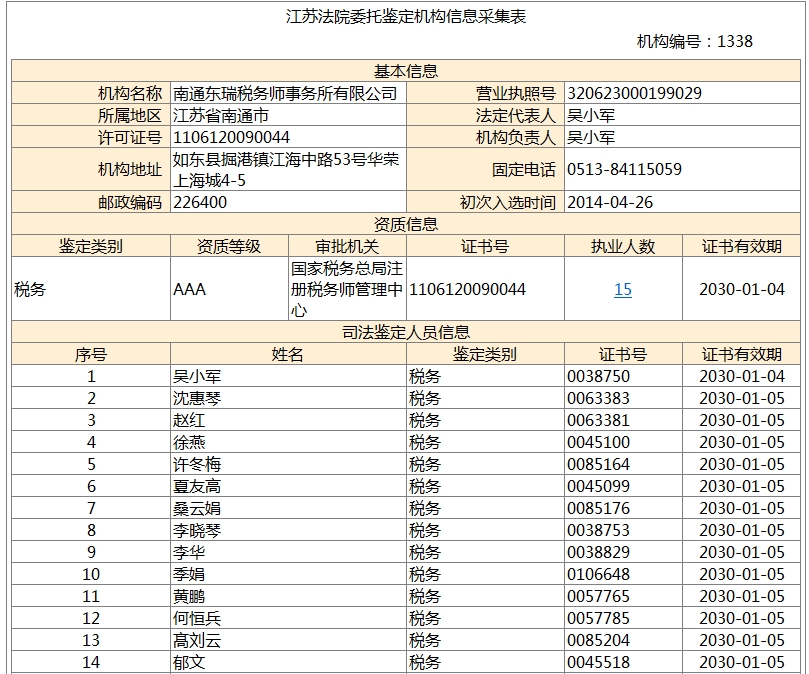 南通瑞東會計(jì)師事務(wù)所、南通東瑞稅務(wù)師事務(wù)所均進(jìn)入《國家司法鑒定人和司法鑒定機(jī)構(gòu)名冊》