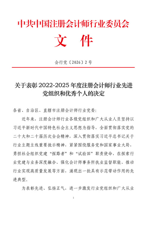 近日,收到中共中國(guó)注冊(cè)會(huì)計(jì)師行業(yè)委員會(huì)文件《關(guān)于表彰2022-2025年度注冊(cè)會(huì)計(jì)師行業(yè)先進(jìn)黨組織和優(yōu)秀個(gè)人的決定》,我所主任會(huì)計(jì)師吳林海同志榮獲注冊(cè)會(huì)計(jì)師行業(yè)“優(yōu)秀黨務(wù)工作者”稱號(hào)。